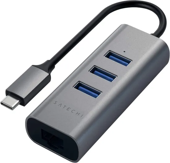 Adaptador de Cabo USB-C 2 Em 1 Ethernet e USB Hub Satechi ST-TC2N1USB31AM Cinza