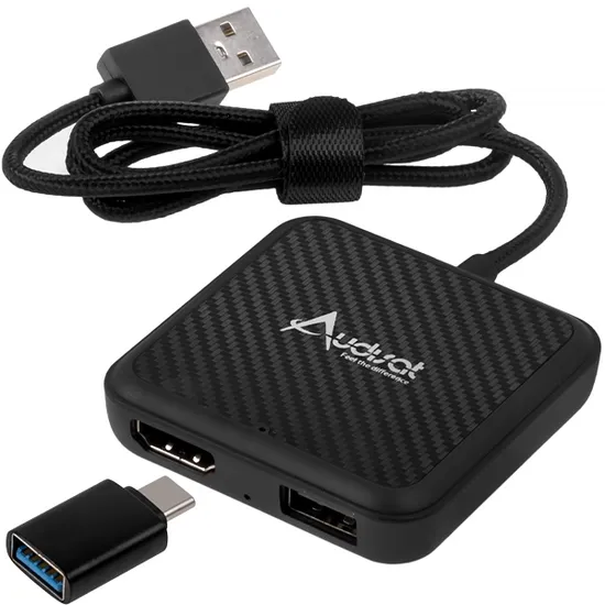 Adaptador Multimidia Streaming Wireless Automotivo Audisat X Carplay CA361-B4 / USB / HDMI para Ios / Android / Bluetooth 5.0 - Preto