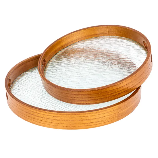 Bandeja de Madeira Redonda 2 Peças 30X4CM