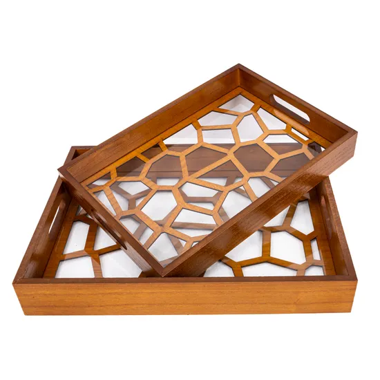 Bandeja de Madeira Retangular 2PZS 40X30X6CM/35X25X5CM
