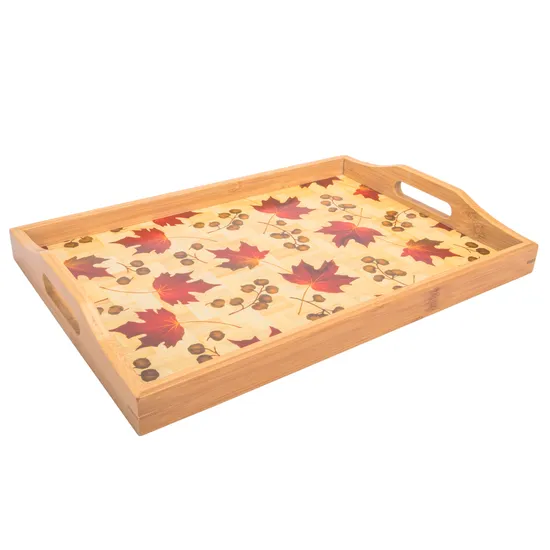 Bandeja Reta de Bambu com Desenho 39 X 27CM