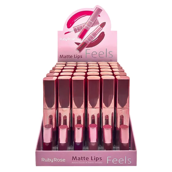 Batom Líquido Ruby Rose Matte Duo Lips Feels HB-8608-5 - 36 Unidades