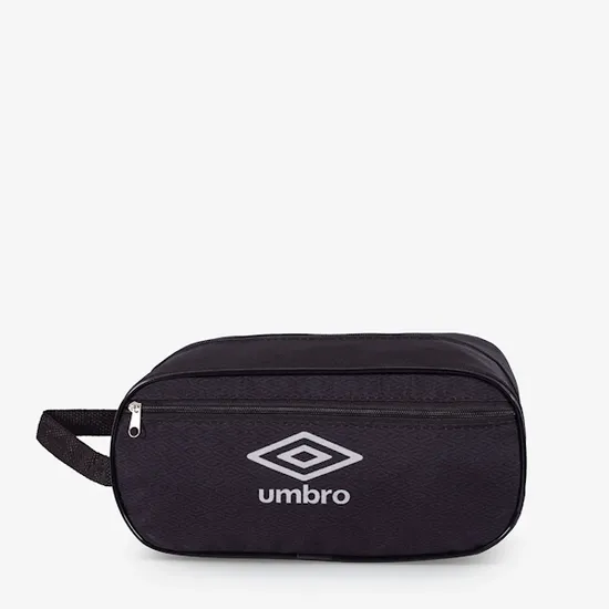 Portabotas con dos bolsillos laterales. Un lado tiene un recorte en tela Airmesh para mayor transpirabilidad y un estampado de diamantes. Logotipo Umbro impreso en ambos lados. Dispone de correa de mano y cierre de cremallera con tirador de cordón.