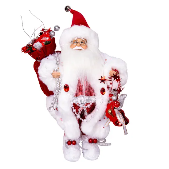 Boneco Decorativo de Natal Papai Noel com Casaco Branco 30CM