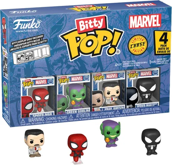 Especificações de Bonecos Spider-Man/ Green Goblin/ Jonah/ Spider-Man Symbiote - Marvel Funko Bitty Pop!