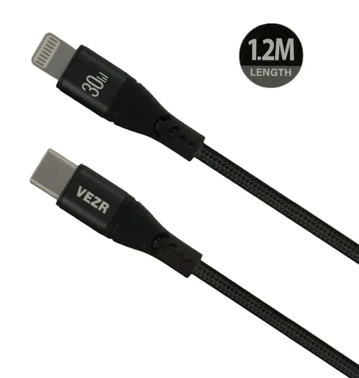 Cable de Datos Vezr VD07 Mfi Type-C To Lightning 30W PD 1.2M Nylon Black