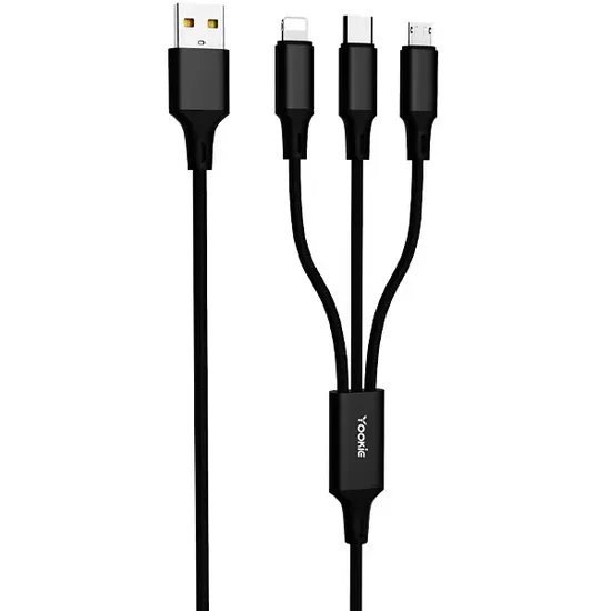 Cabo 3 Em 1 Yookie ECO6 Micro USB + Lightning + USB-C 1 Metro - Preto