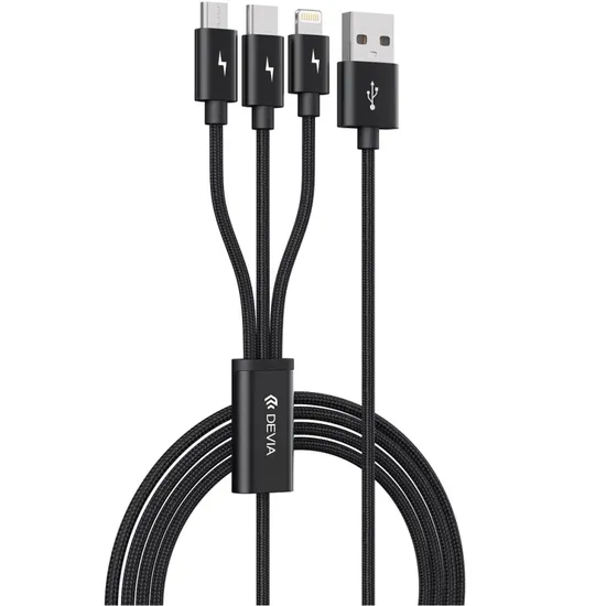 Cabo Devia EC048 3 En 1 USB-A To USB-C/ Lightning/ M-USB 1.2 Metros - Black