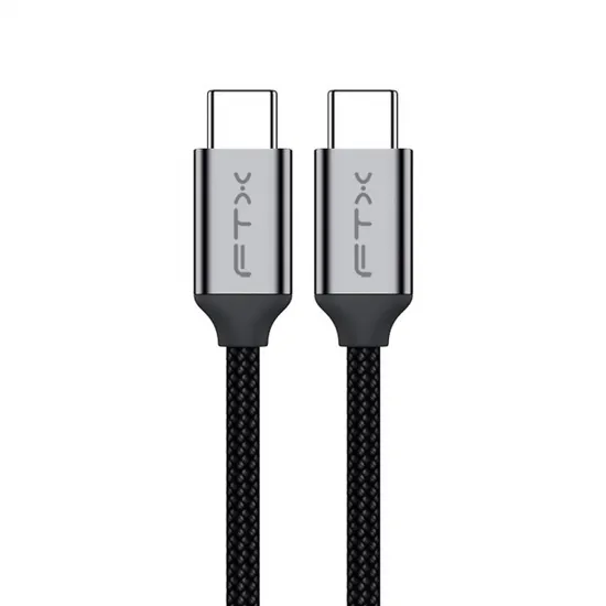 Cabo USB-C Macho para USB-C Macho 3.2, 1M FTX CT-C160-PU31-CMCM2-AG1, 20GBPS, 100W, 20V, 5A, 4K, 60HZ/120HZ, 1080P, Preto, Carcaça de Alumínio, Nylon Trançado