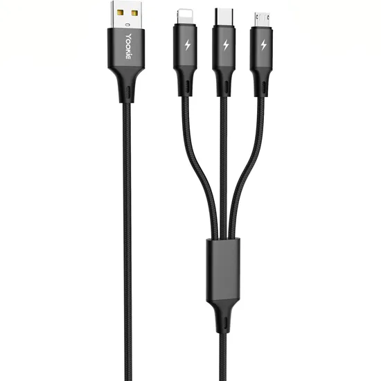 Cabo Yookie EC06 - 3 Em 1 - USB/USB-C/Lightning/Micro USB - 1 Metro - Preto