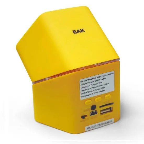 Especificações de Caixa de Som BAK BK-S237 Amarela com LED e USB