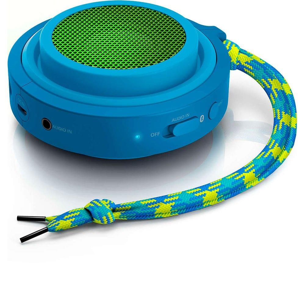 O speaker Philips Flex com conexão Bluetooth conta com uma bateria recarregável de 12 horas e seu design com lados extensíveis que enriquecem a experiência de áudio do usuário.