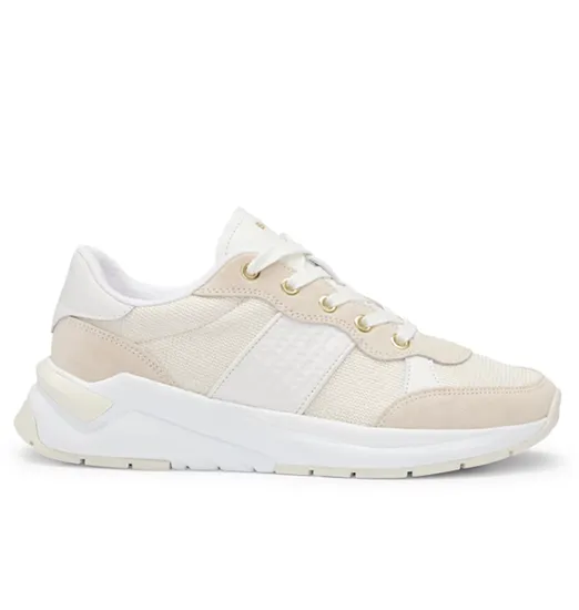 Zapatillas bajas de BOSS, confeccionadas en una combinación de materiales con detalles de piel, marca y monogramas en relieve.