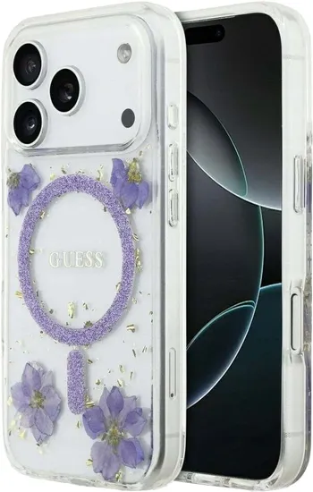 Capa Guess para iPhone 17 Pro GUHMP17LRBFGFGMU - Flowers And Glitter