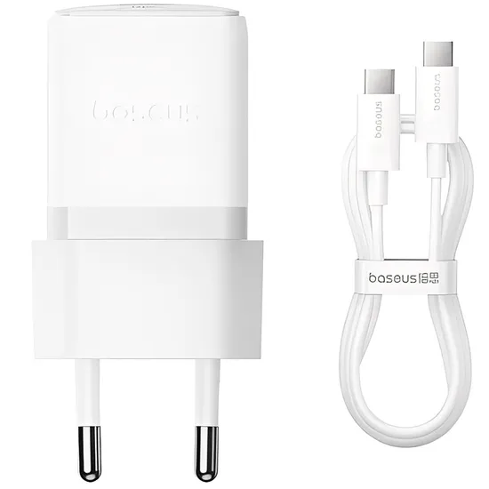 Carregador de Parede Baseus Palm Fast Charger 30 W Eu USB-C - Moon White + Cabo USB-C