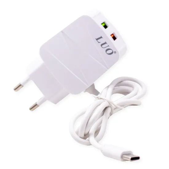 Carregador de Parede Luo LU-6168 / 2X USB-A / com Cabo USB-C / 6.0A - Branco