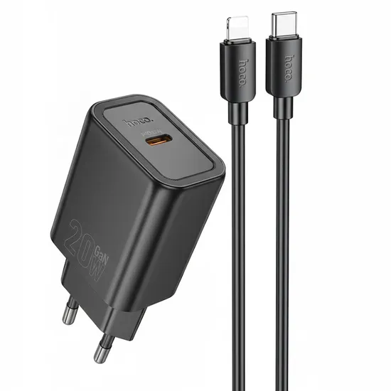 Carregador Hoco N60 20W + Cabo USB-C para Lightning - Preto