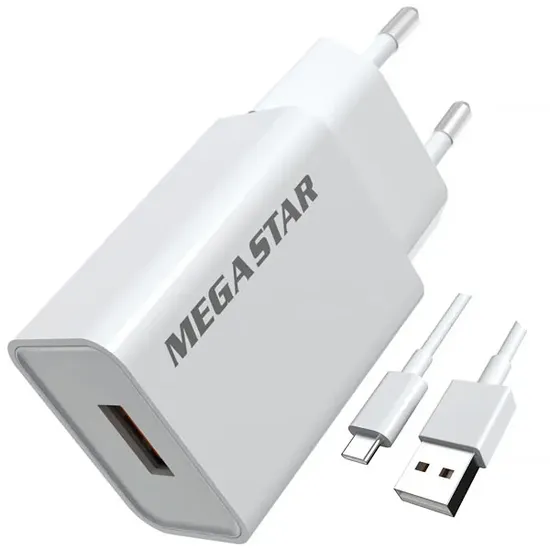 Carregador Megastar CH400B USB de 10 Watts + Cabo USB-C