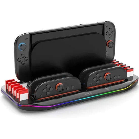 Carregador para Nintendo Switch 2 Multifuncional para 4 Joysticks com 12 Slots RGB