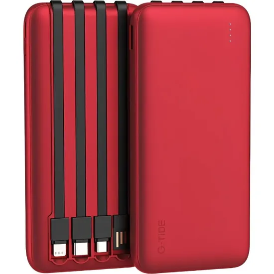 Carregador Portatil Powerbank G-Tide P1 / 10.5W / 10000MAH / com Cabo Embutido USB - Microusb - USB-C - Lightning - Vermelho