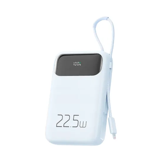 Especificações de Carregador Portátil Powerbank Mcdodo MC-325 / 10000MAH / 22.5W / 1X USB-A / 1X USB-C + Cabo Lightning Embutido - Azul Claro