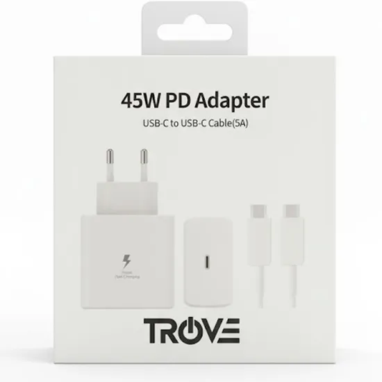 Carregador Trove PD Fast 45W com 1 Porta USB-C / com Cabo USB-C - Branco