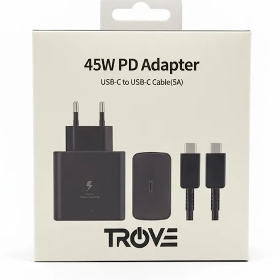 Carregador Trove PD Fast 45W com 1 Porta USB-C / com Cabo USB-C - Preto
