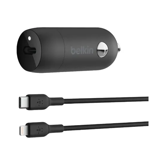 Carregador Veicular Belkin CCA003BT04BK / 20W / USB-C 10W + Cabo USB-C / Lighting – Preto