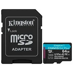 Cartão de Memória Micro SD Kingston Canvas Go Plus U3 C10 V30 A2 64GB - SDCG4/64GB