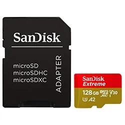 Especificações de Cartão de Memória Micro SD Sandisk Extreme U3 V30 128GB 4K - SDSQXAA-128G-GN6AA