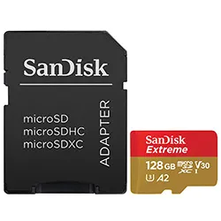 Especificações de Cartão de Memória Micro SD Sandisk Extreme U3 V30 128GB 4K - SDSQXAA-128G-GN6MA