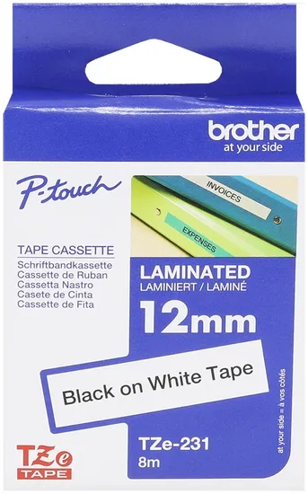Cartucho de Fita Brother TZE-231 para Rotulador P-Touch 12MM/8 Metros Preto/Branco