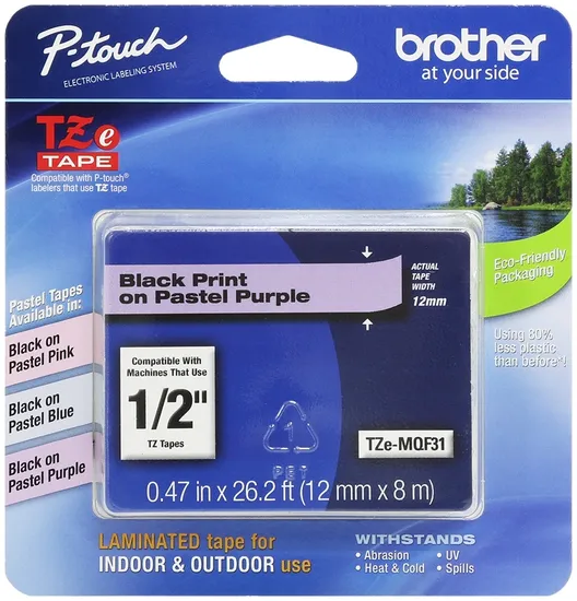 Cartucho de Fita Brother TZE-MQF31 para Rotulador P-Touch 12MM/8 Metros Preto/Roxo Pastel