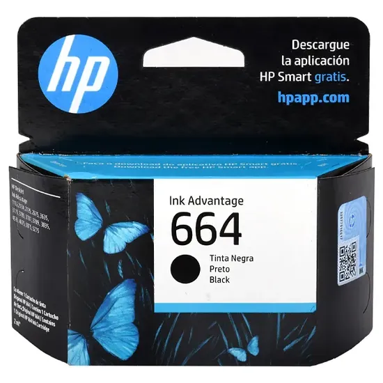 Especificações de Cartucho de Tinta HP 664 F6V29AL para Impressoras HP - Preto
