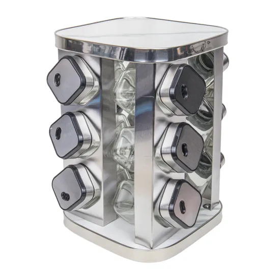 Condimentador Giratório de Inox com 12 Frascos de Vidro