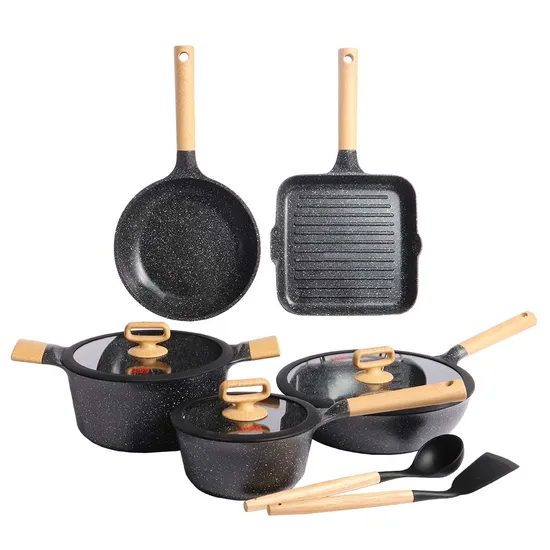 Conjunto de Panelas de Indução Ucc Life Pretas com 10 Peças: Panelas de 16/24 CM, Frigideiras, Wok de 28 CM e 2 Espátulas.