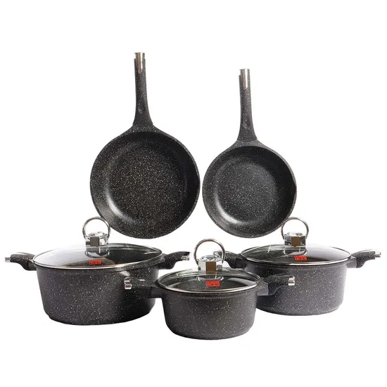 Conjunto de Panelas de Indução Ucc Life Pretas com 8 Peças: Panelas de 20/24/28 CM e Frigideiras de 24/28 CM.