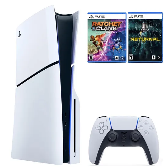 Console Sony Playstation 5 Slim CFI-2015 A01X 1TB / Standard Edition / Bivolt - Branco + 2 Jogos Returnal / Ratchet e Clank (Americano)