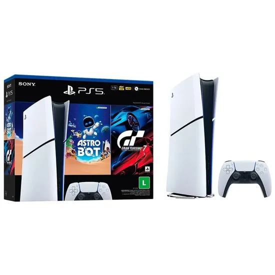 Console Sony Playstation 5 CFI-2015B Gran Turismo 7 + Astro Bot - 1TB - 4K - 1 Controle - Midia Digital - Bivolt - Branco