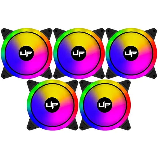 Cooler Fan de Gabinete Kit com 5, Up Gamer Fusion, Argb 5V, 120MM, Con Controle, Preto