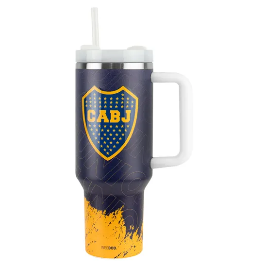 Copo Térmico Weedoo Boca Junior FC - 1.2L - com Canudo - Azul e Branco