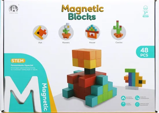 Cubos Magnéticos de Construção Magnetic Blocks Chuang Huang - CH1232 (48 Pçs)