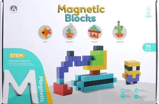 Cubos Magnéticos de Construção Magnetic Blocks Chuang Huang - CH1235 (96 Pçs)