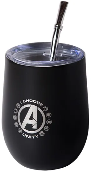 Cuia Térmica Big Life Avengers Cup 3 Em 1 com Bomba 350ML - Preto