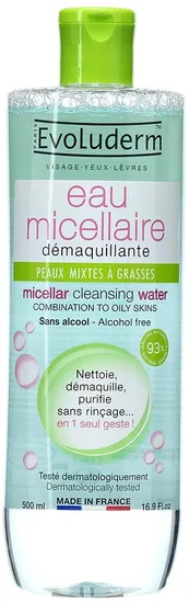 Demaquilante Evoluderm Eau Micellaire Peaux Mixtes Á Grasses - 250ML