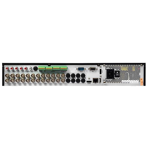 | Interface | Video OUT - 4 Audio IN - Line IN - Audio OUT - RS-485 - RS-232 - VGA - HDMI - Ethernet - 4 SATA - 3 USB - Alarme (Input/Output) |