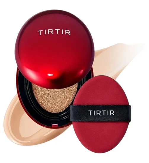 Descubra a base TIRTIR Mask Fit Red Cushion, desenvolvida para oferecer cobertura impecável por até 72 horas com um acabamento leve e radiante. Sua fórmula, enriquecida com extrato de hibisco e própolis vermelha, melhora a elasticidade da pele enquanto disfarça imperfeições, vermelhidão e linhas finas. Com textura respirável e bico dosador de precisão, garante aplicação uniforme para uma tez fresca, luminosa e com aspecto de vidro.