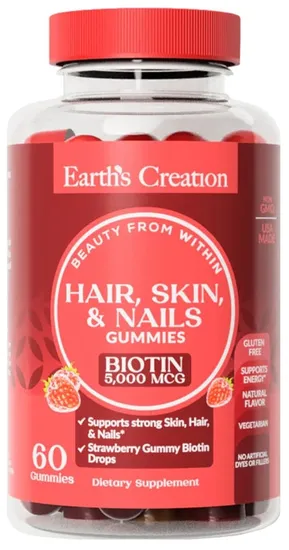 Earth's Creation Hair, Skin & Nails Biotin 500MCG (60 Gummies)