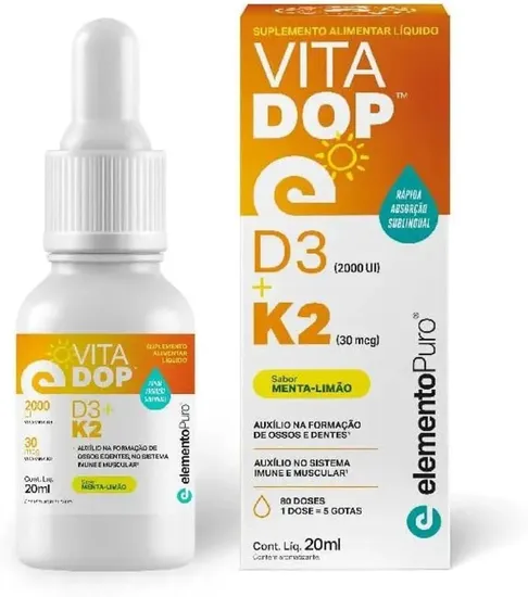 Elemento Puro Vitamina Vitadop D3 K2 Em Gotas 20ML Plastico 20 ML Naranja