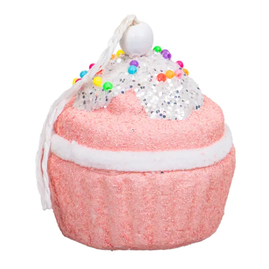 Enfeite Natal Pendurado Em Formato de Cupcake 5CM Rosa